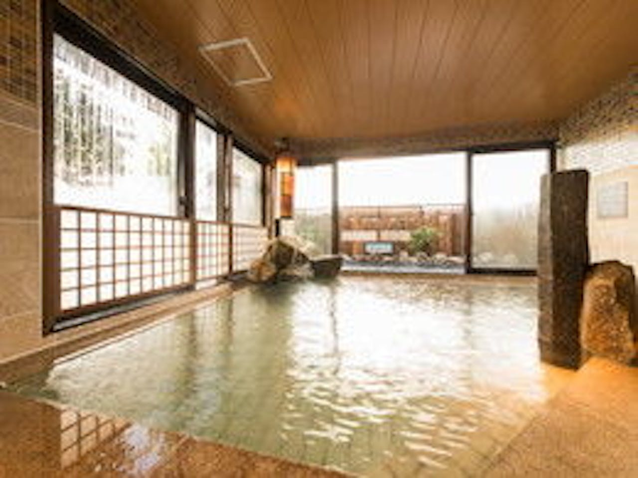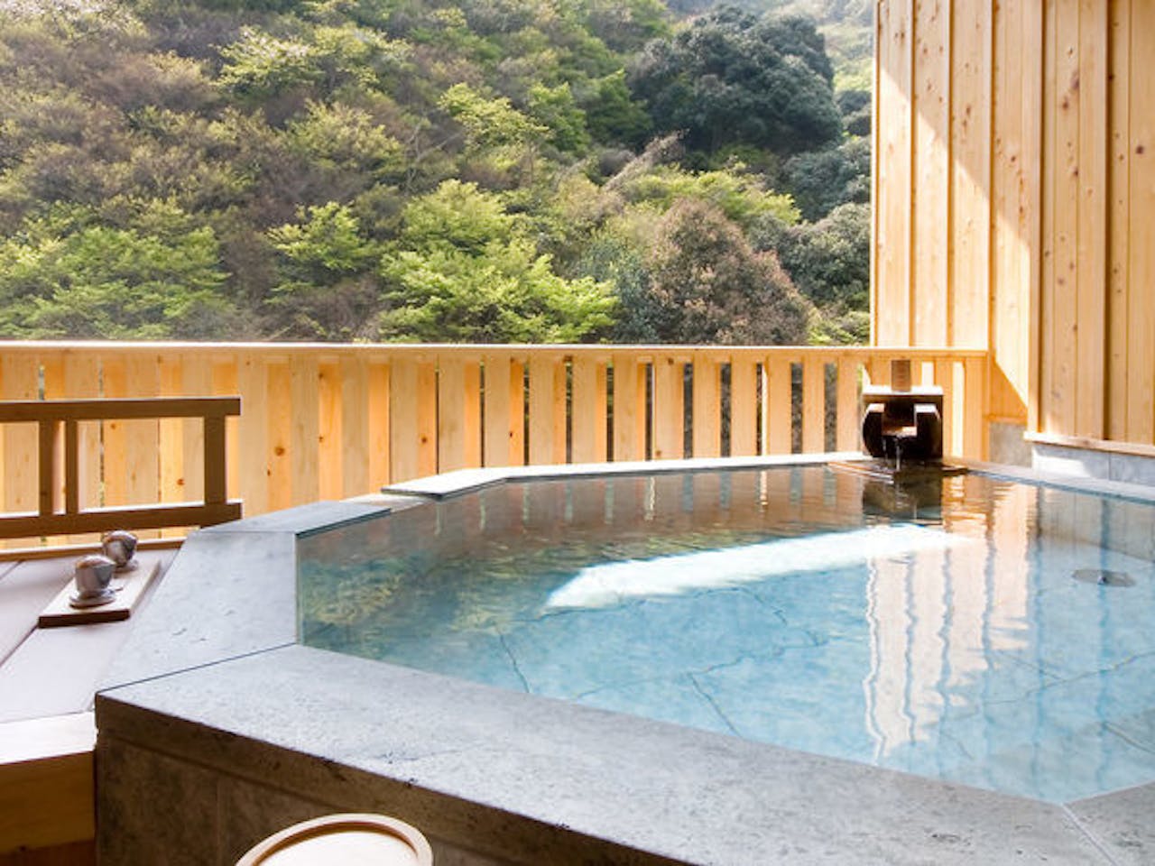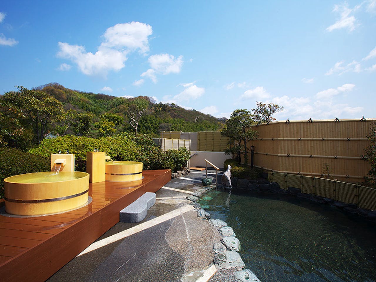 その4創業390年余りにもなる夏目漱石や松岡子規もゆかりのある老舗温泉旅館です。四季折々の風情を堪能できる日本庭園がこちらの旅館の大きな魅力となっています。いつ訪れても違う姿が楽しめます。大浴場は2つ用意されており、男女入れ替えで利用できます。また、ベビーベッドも設置されており、赤ちゃん連れも安心です。