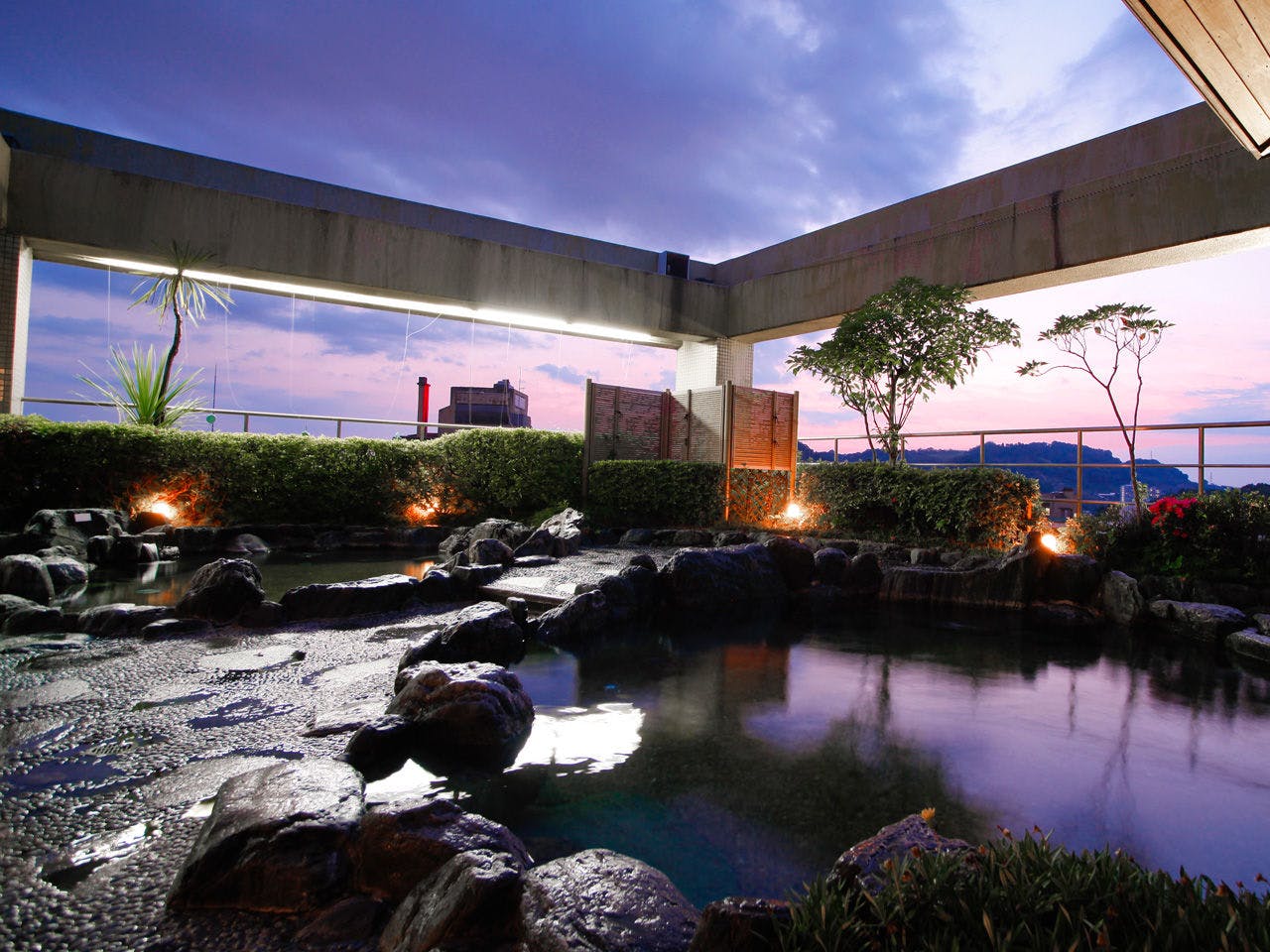 その7モダンな雰囲気と道後初の屋上露天風呂が魅力の温泉宿です。露天風呂からは松島城が望めます。お子様にはご当地キャラみきゃんのアメニティーが付いており、お子様に大人気です。お子様向けメニューも有り、食事面も安心です。要予約でケーキやお花をお願いできるので、当日誕生日などお祝いにもぴったりです。