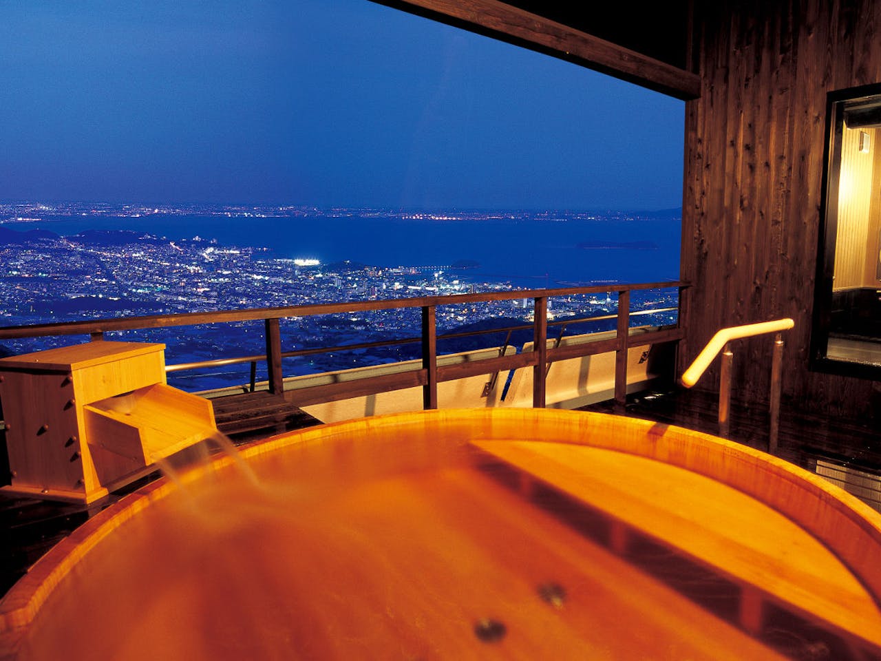 その7は東名高速道路の音羽蒲郡ICより約50分程の所にあるグリーンホテル三ヶ根です。三河湾国定公園の三ヶ根山頂に位置しているため四季折々の山々と時間と共に色を変える三河湾を眺めることができます。大浴場や露天風呂からパノラマの夜景を楽しむことができ、お風呂を堪能した後は湯上がり処で冷たい麦茶で一休みできます。