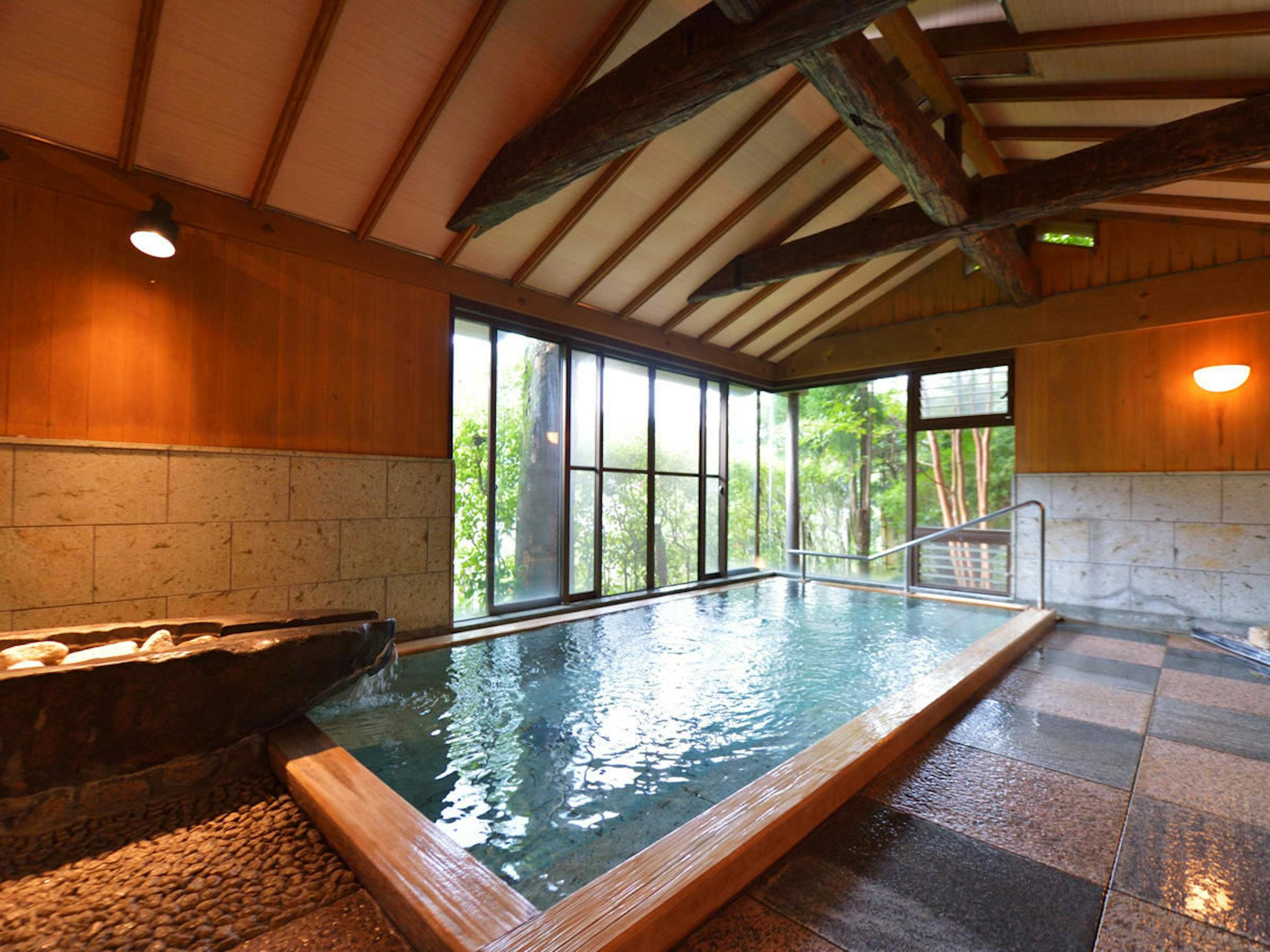 湯坂山に包まれる形で佇む建物の中には、機能性や情緒を大切にしながら造られた室内と、調和の取れた雰囲気と心配りが行き届きます。
