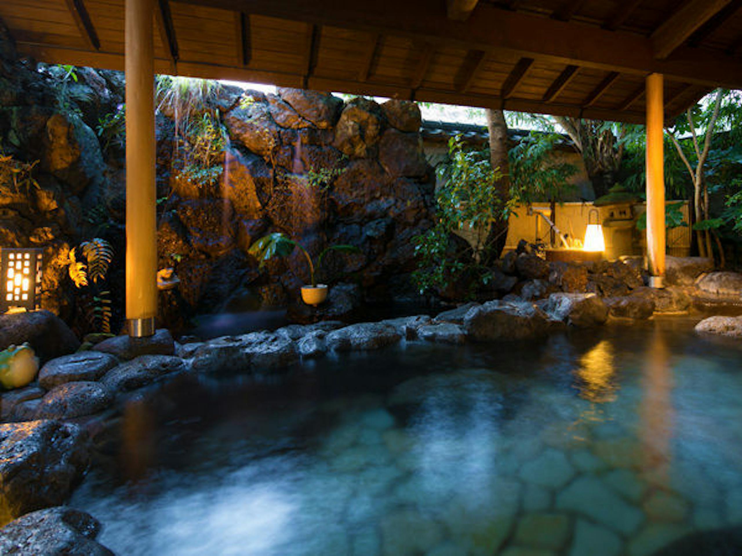その2ホテルおかだは、和風リゾートホテルの1つで、毎分270Lというお湯が湧き出る源泉が特徴です。