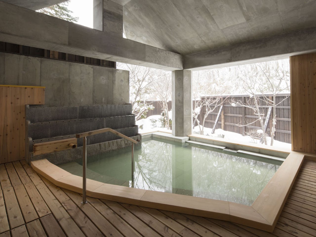 その8かけ流しの露天風呂があり、木立に囲まれた和の構えのホテルで、日常から離れた奥座敷を堪能できます。まるで絵画のような渓谷の風景が窓いっぱいに広がり、暖炉の炎が最高のくつろぎを感じさせてくれます。和室と洋室がありますが、赤ちゃん連れの家族には3種類の和室の中から選ぶことができます。