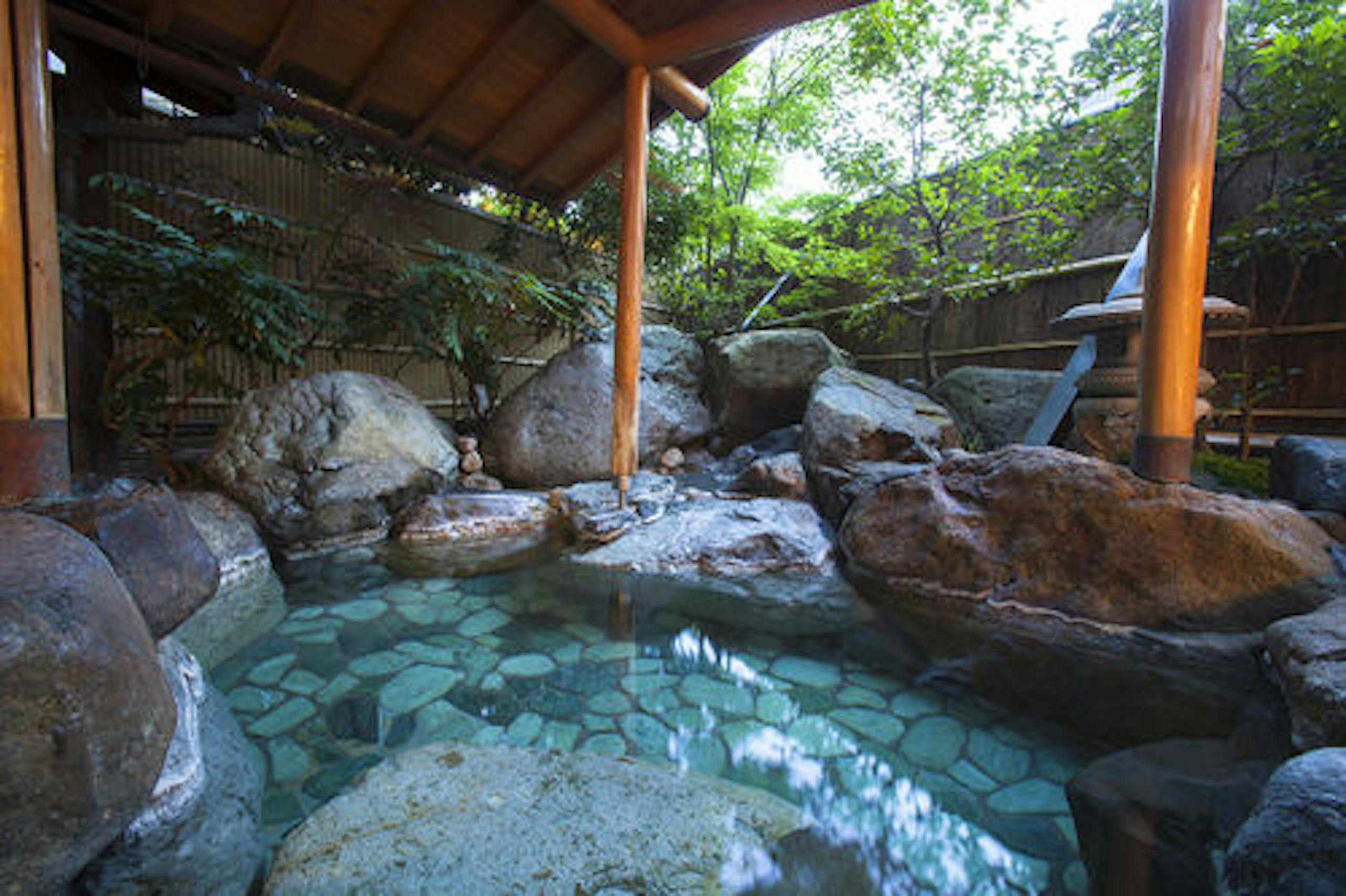 その1は城崎温泉駅から車で10分程の所にある西村屋ホテル招月庭です。5万坪の大庭園の中にあり、庭園内にある森林には四季の花々が咲き、お子さんとの散策や自然観察にぴったりです。夏はプールもあるので水遊びができます。お風呂は男湯女湯だけでなく貸切風呂もあるので、家族で温泉を堪能できます。