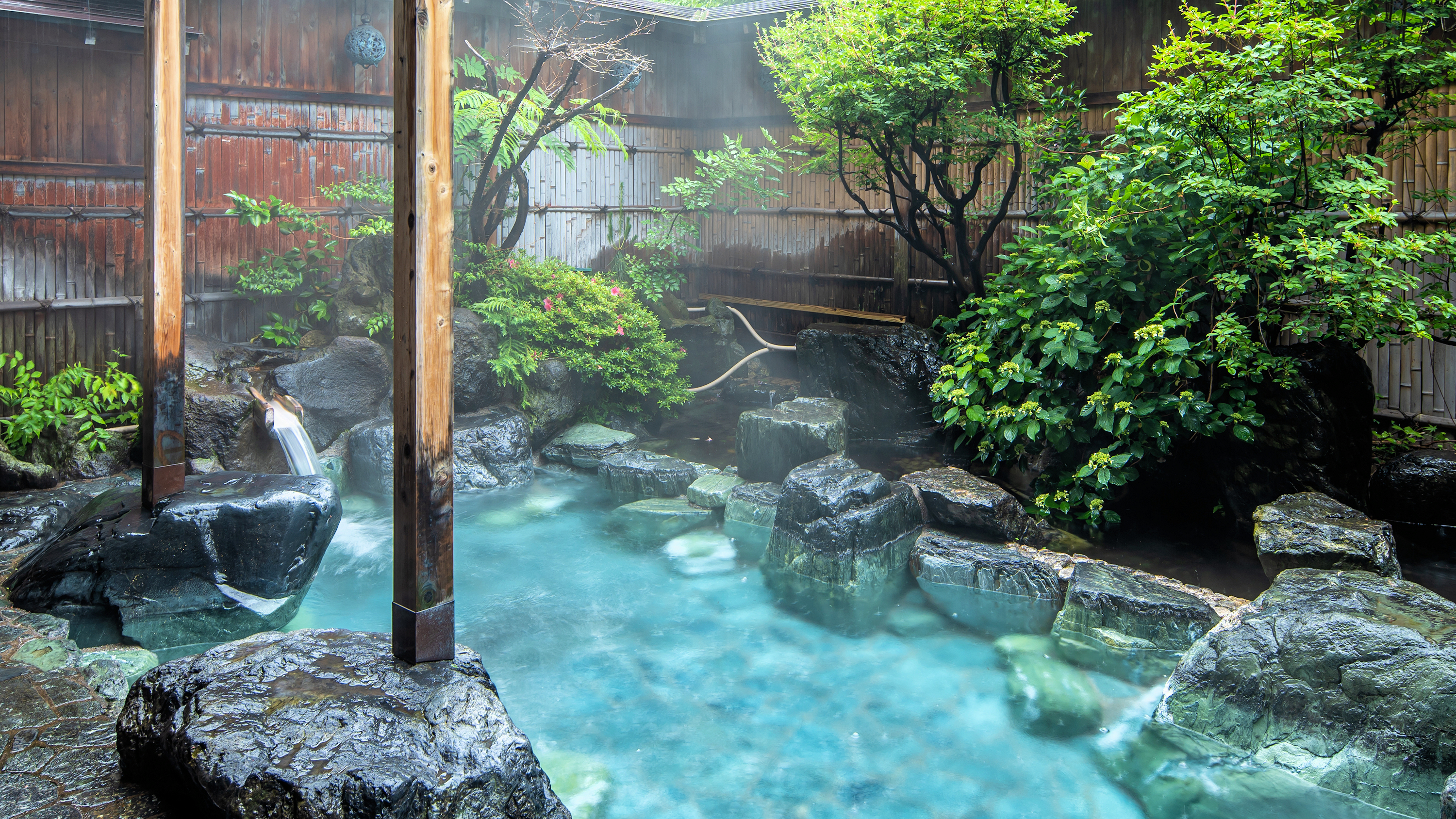 その3利根川源流に建つ「源泉湯の宿松乃井」です。4つの源泉を持ち、お風呂は全て源泉100%かけ流しで、自社所有の源泉から引き湯をしており、湯殿の底から湧き上がる「湧湯」で生の温泉を堪能できます。「華松園」という日本庭園は利根川沿いに造られ、水上の大自然や四季を眺められます。庭園プールや卓球などの施設も充実しています。