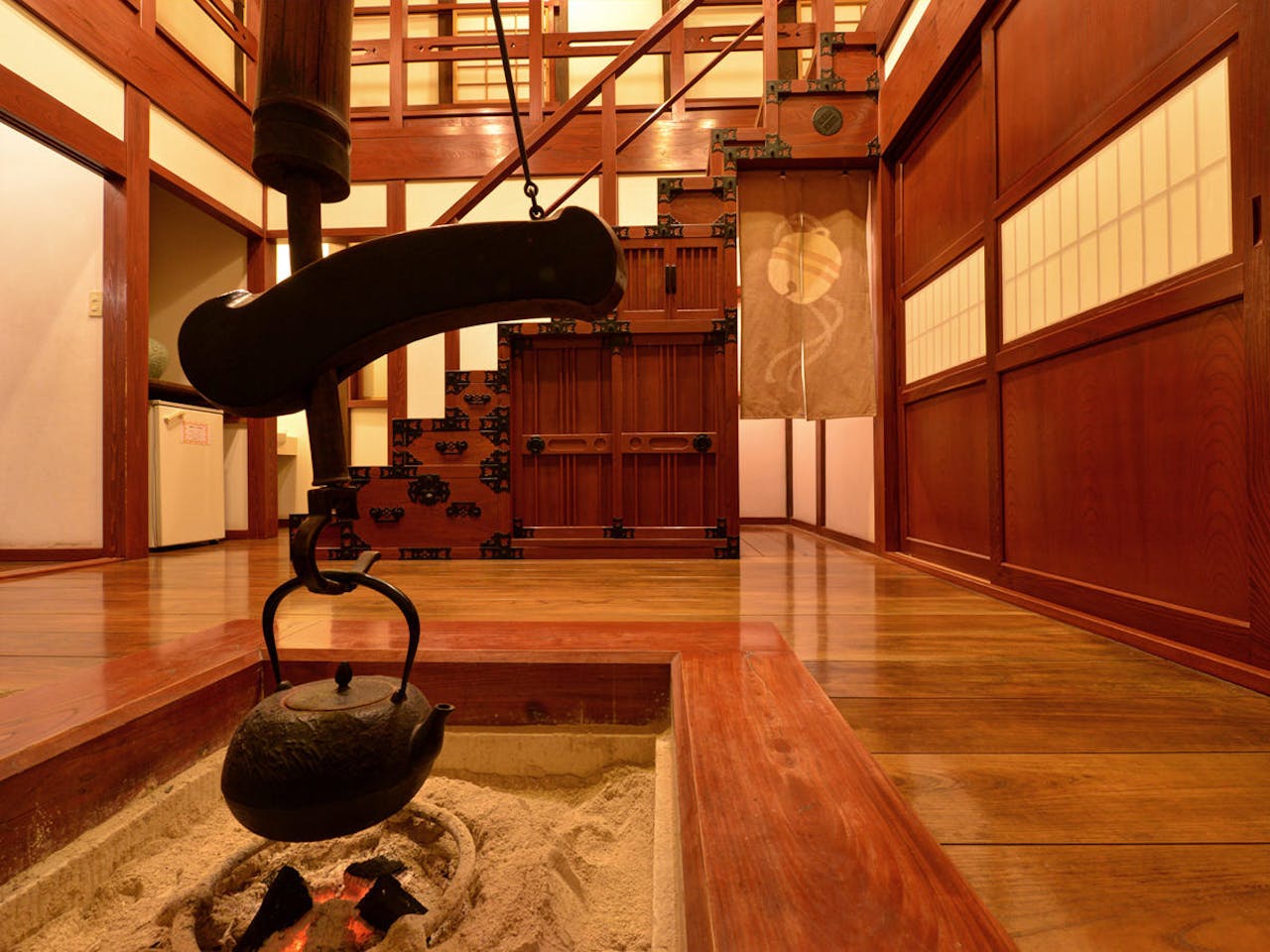 その10「旅籠庄屋」です。元群馬県知事のお屋敷にあった蔵を客室として移築・改装した「壱の蔵」という客室や、「弐の蔵」は共にメゾネットタイプで、上下に和室があります。「壱の蔵」の一階は火鉢があり、「弐の蔵」は囲炉裏と吹き抜けがあります。温泉は源泉掛け流しになっており、温度は41℃と適温で飲泉もでき、胃腸に良いそうです。