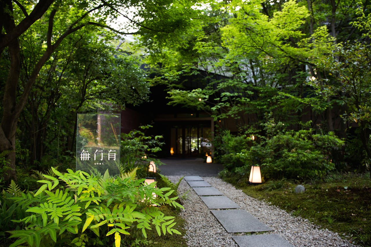 その10自然の山庭を囲むようにして立つ「べにや無何有」は、外の風景が流れ込むような解放感あふれる造りが魅力の温泉宿です。全ての客室に庭に面した源泉露天風呂が付いているので、子ども連れや赤ちゃん連れでもゆっくり入浴できます。トリートメントコーナーがあるので、育児に疲れたお母さんにマッサージのプレゼントはいかがでしょうか。