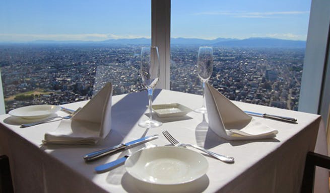 その2、名古屋マリオットアソシアホテル最上階のこちら、ミクニナゴヤです。ヘルシーで美味しい料理を最上階52階という絶好のロケーションで楽しむことができます。インテリアも優雅で素敵なお店です。