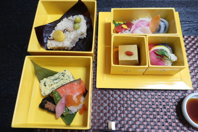 その6ベイエリアに立つリゾートホテルのグランドパーク小樽内にある「和食処こころ」は、北の味覚と北海道各地の日本酒が楽しめる料亭です。結納プランは小鉢からデザートまでの全8品で、飾り付けや盛り付けの美しさが特別な日のテーブルを鮮やかに演出します。